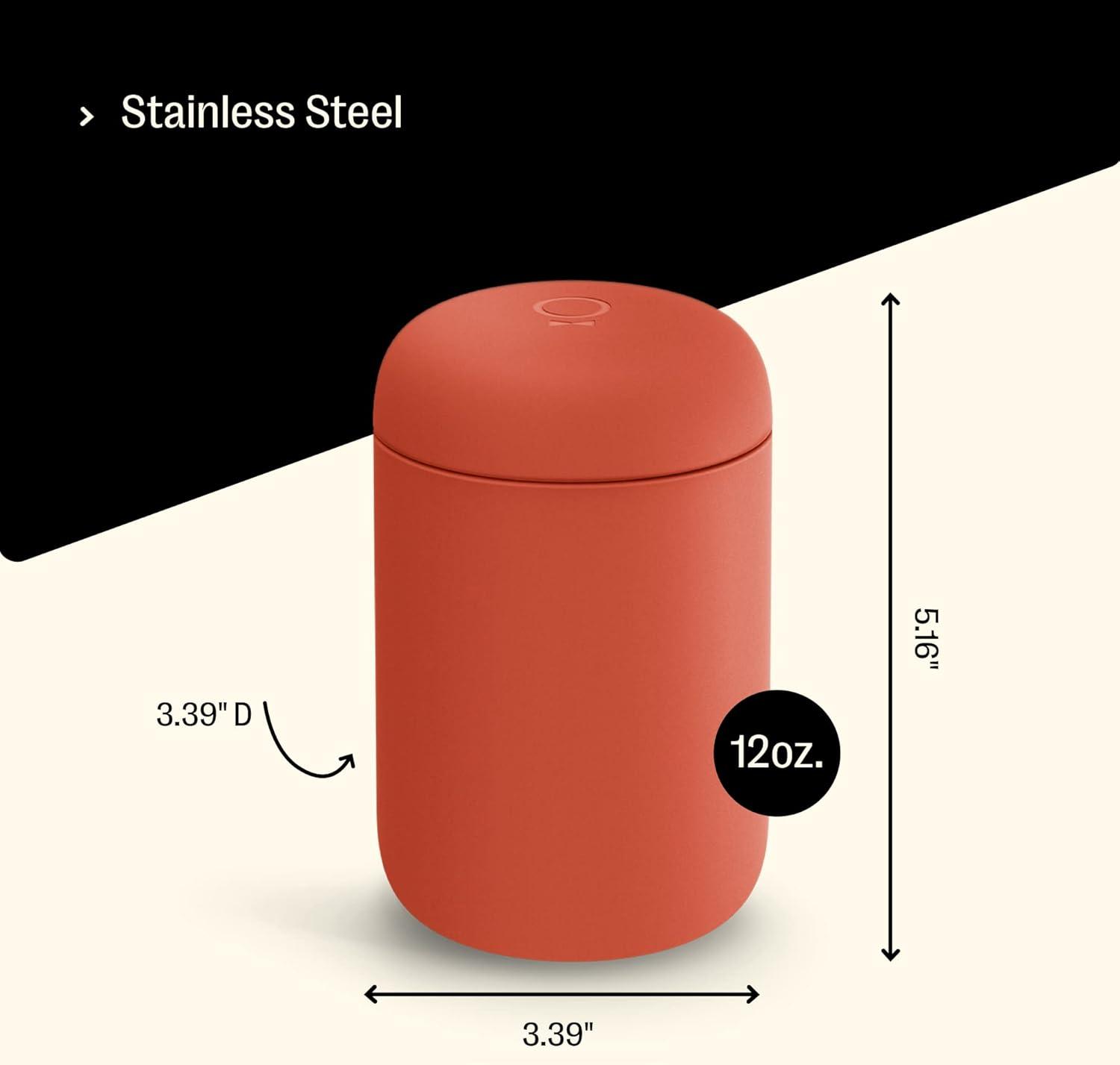 Fellow 12 oz Carter Wide Travel Mug – Wide Mouth Vacuum-Insulated Stainless Steel Coffee Mug – Tea and Coffee Tumbler – Travel Coffee Mug with Ceramic Interior – Corduroy Red