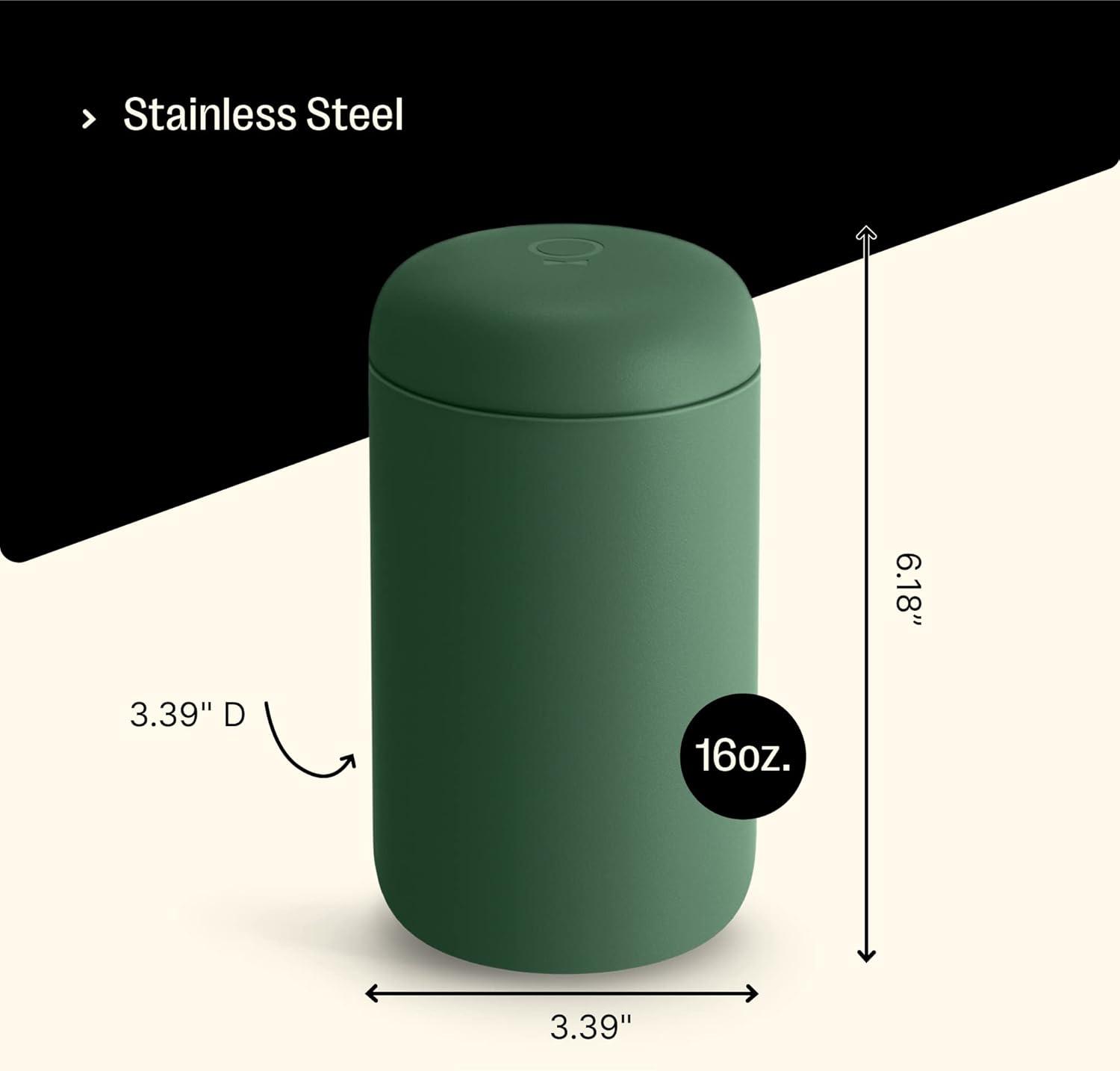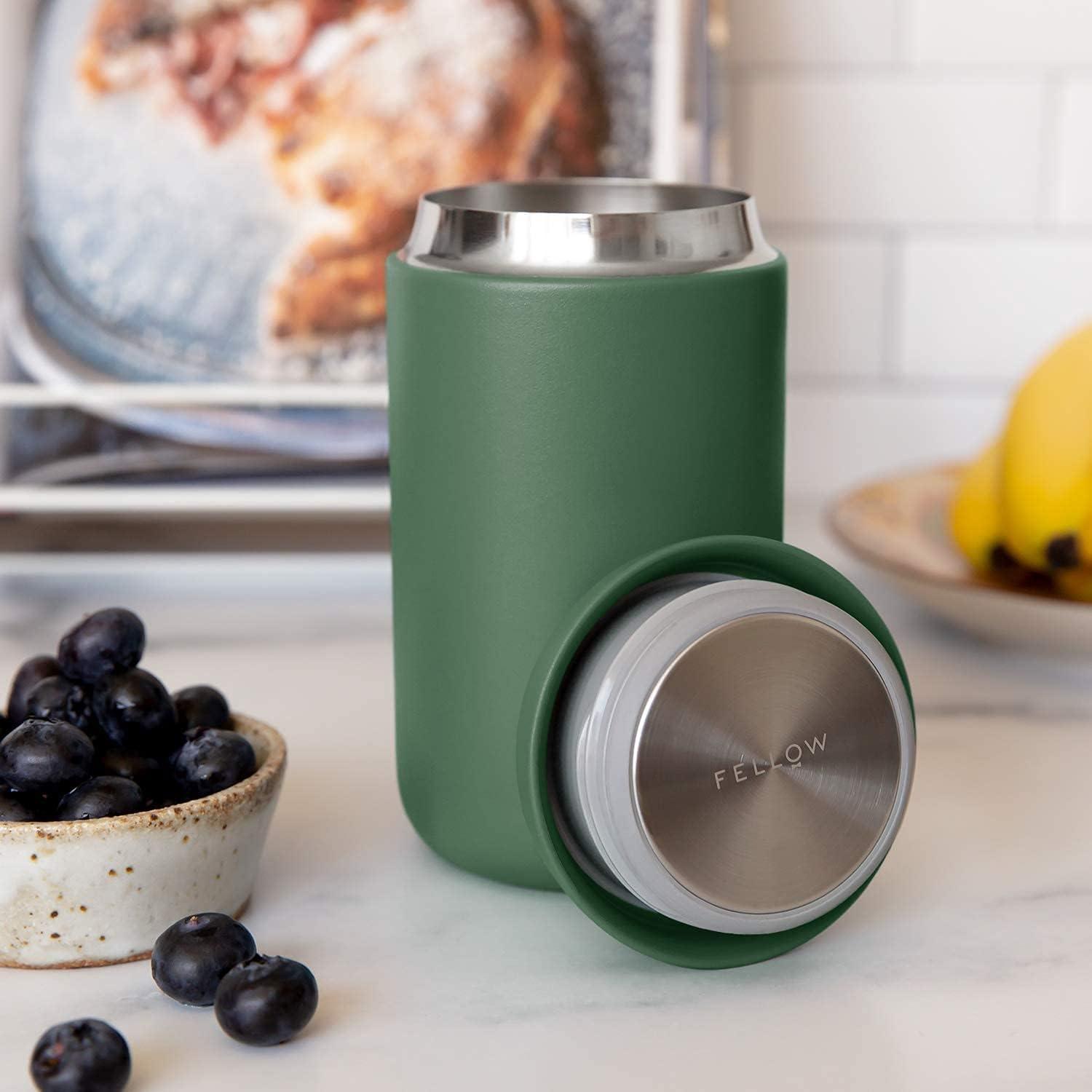 Fellow 16 oz Carter Wide Travel Mug – Wide Mouth Vacuum-Insulated Stainless Steel Coffee Mug – Tea and Coffee Tumbler – Travel Coffee Mug with Ceramic Interior – Cargo Green