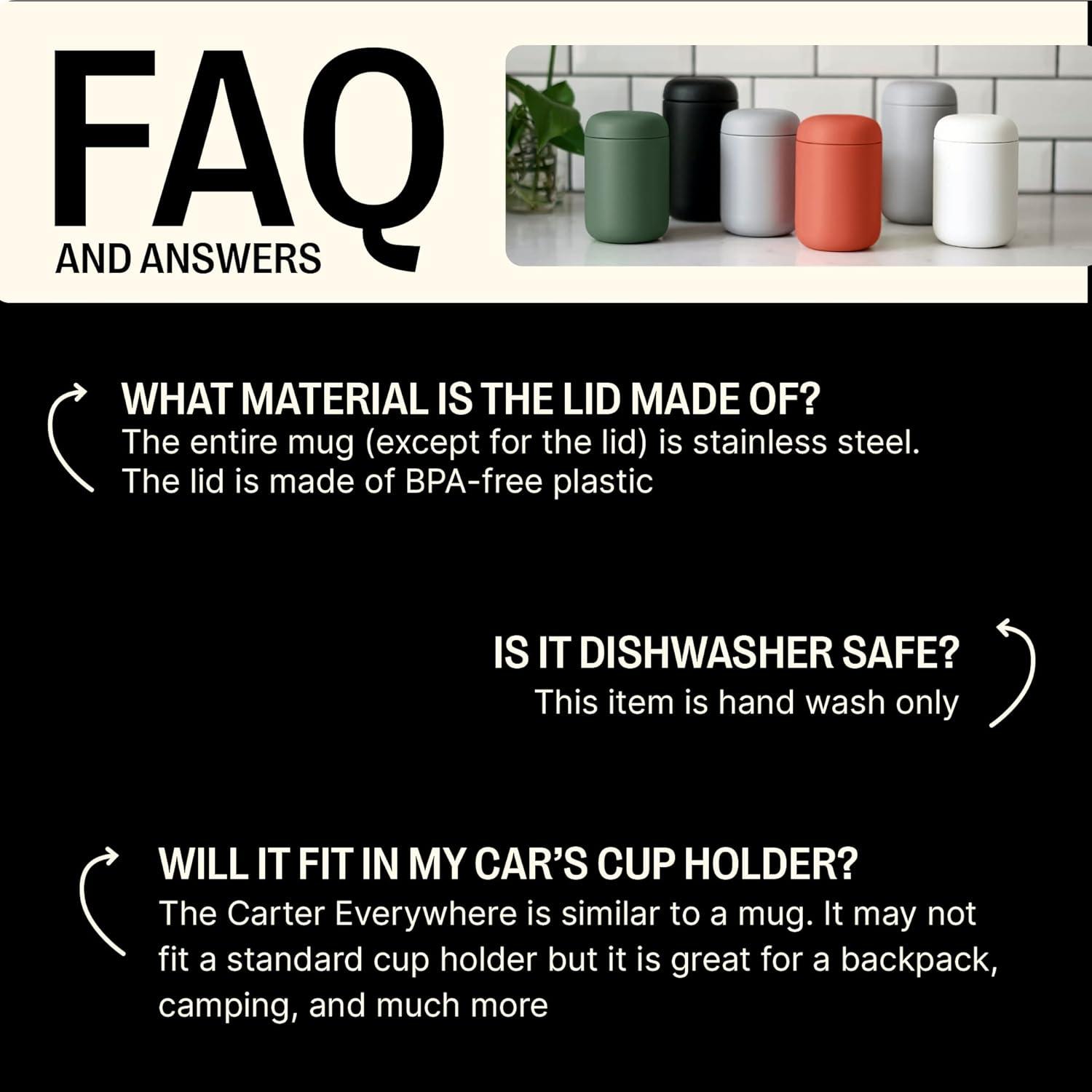 CARTER EVERYWHERE MUG: A slim and sleek mug worthy of the coffee inside, this 16 oz cup enhances your drinking experience. With a tapered thin lip for easy drinkability and a mug-inspired mouth that allows you to take in the full aromas of your brew.