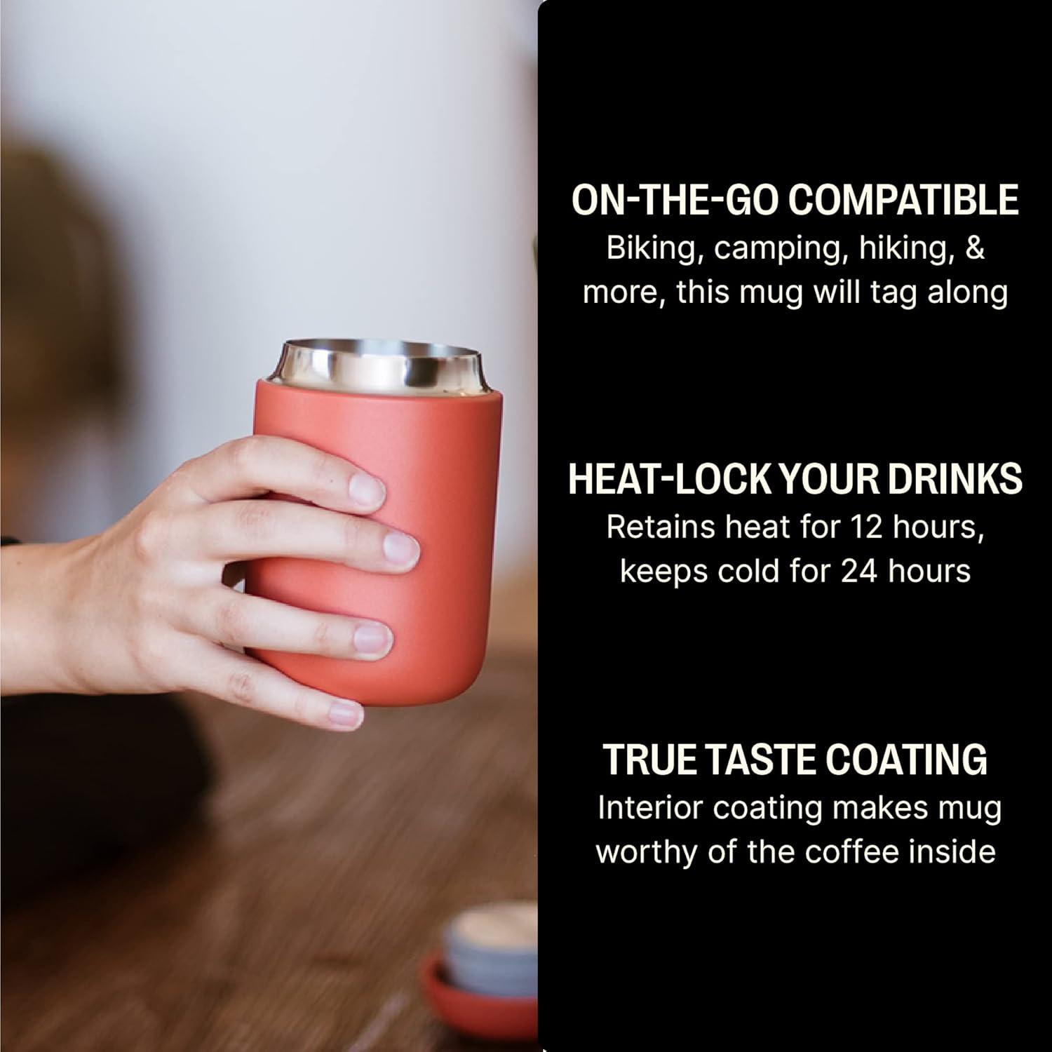 HEAT-LOCK YOUR COFFEE & TEA: Designed to amplify your coffee experience even when you're on the go, our 304 18/8 double-wall vacuum-insulated stainless steel tumbler retains heat for up to 12 hours and stays cold for up to 24 hours.