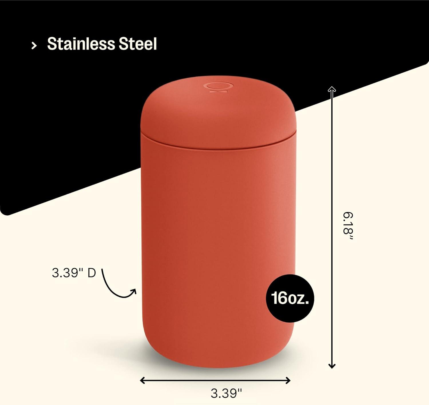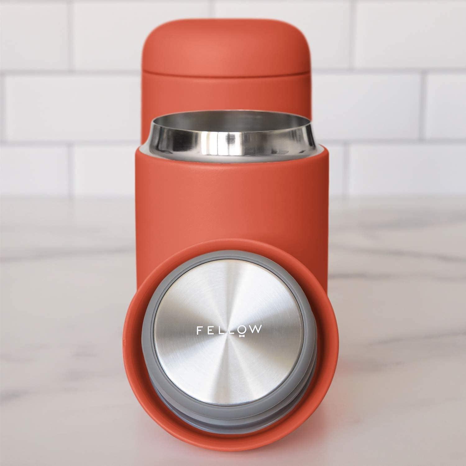 Fellow 16 oz Carter Wide Travel Mug – Wide Mouth Vacuum-Insulated Stainless Steel Coffee Mug – Tea and Coffee Tumbler – Travel Coffee Mug with Ceramic Interior – Corduroy Red