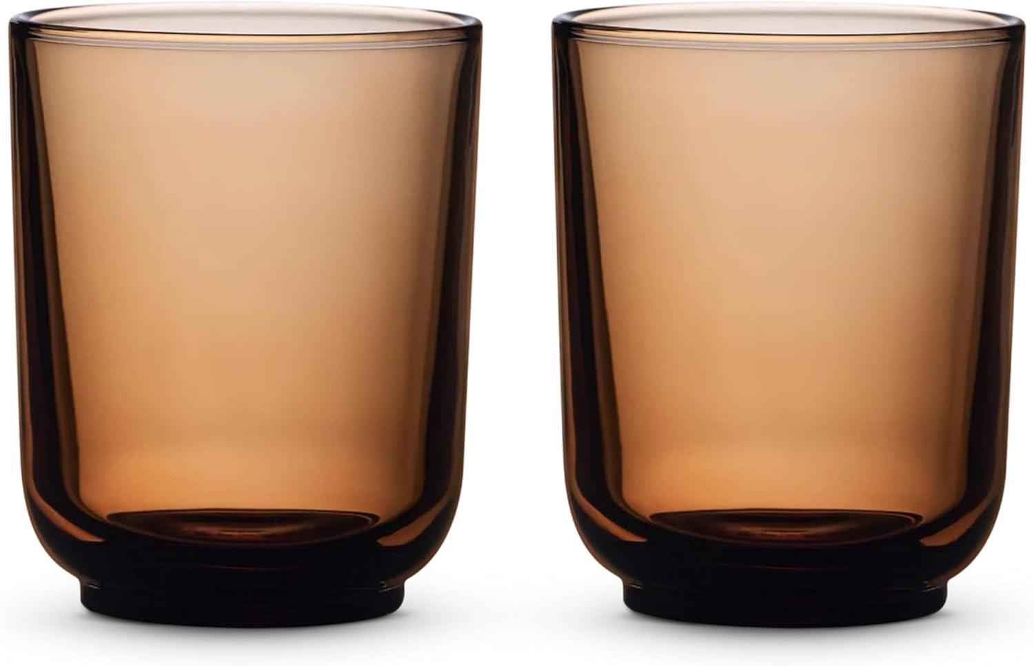 Fellow Pirch Latte Glasses 11 oz Artisanal Cups, Set of 2, Dishwasher Safe Coffee Glasses for Espresso Drinks & Latte Art – Smoke(Amber)
